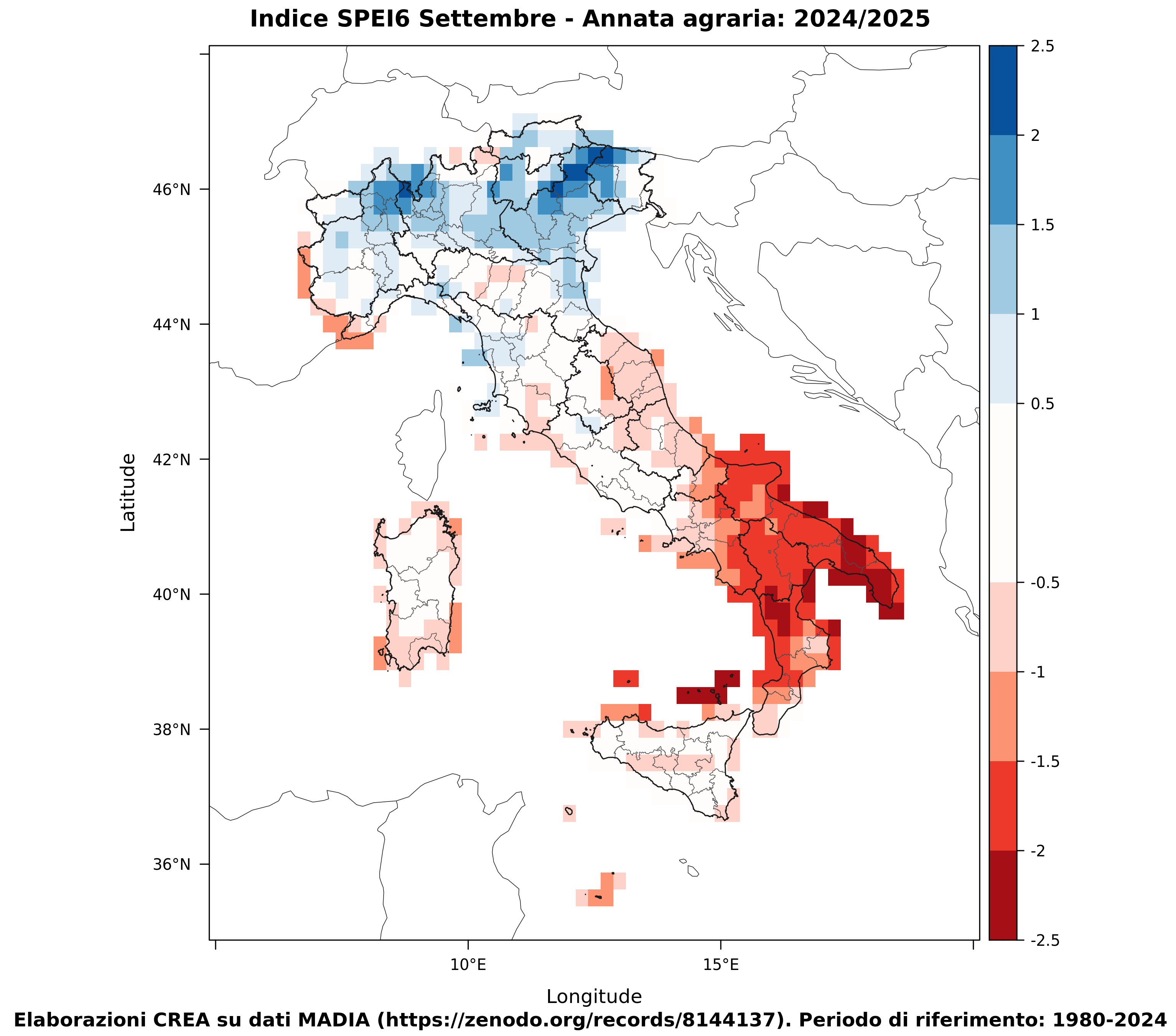 L’andamento agrometeorologico di settembre 2025“… Secondo lo SPEI6, il deficit pluviometrico che si protrae da mesi al Sud ha fatto scalare questa zona in siccità moderata (con Puglia e Calabria in siccità severa)…” Link: Pianeta PSR – L’andamento agrometeorologico di settembre 2025